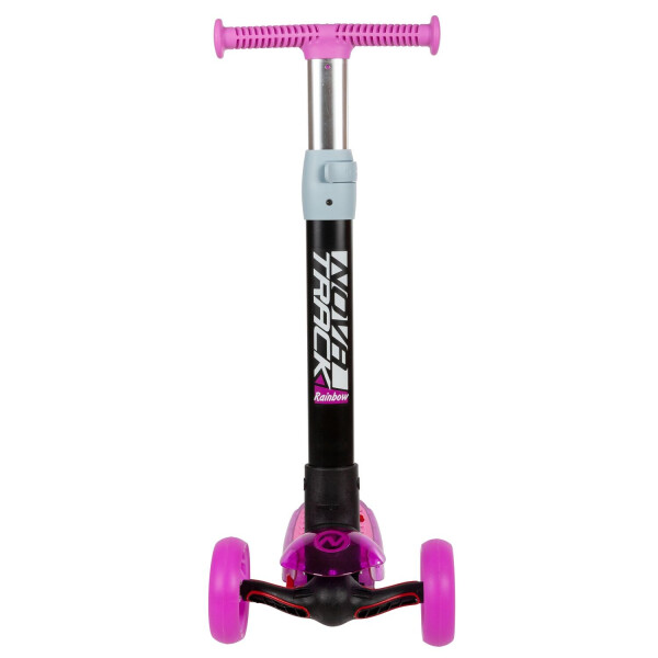 Этот детский самокат-кикборд обязательно понравится вашему ребенку! RAINBOW PRO TRANSPARENT оснащен удобным складным механизмом на кнопке. Регулируемый по высоте руль с мягкими грипсами, надежный и простой в использовании ножной тормоз сделают катание комфортным. А стильная и яркая расцветка не оставит никого равнодушным. Кикборд представлен в розово-фиолетовом и сине-оранжевом цветах. Обращаем внимание, что руль на этой модели несколько шире - 30 см, а диапазон регулировки по высоте от 64 см до 69 см. Самокат рассчитан на детей от трех лет. С этим самокатом ребенок точно получит максимум внимания во дворе и будет счастлив!