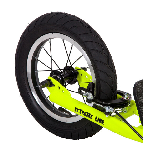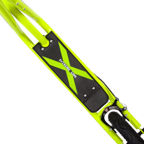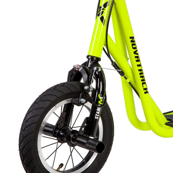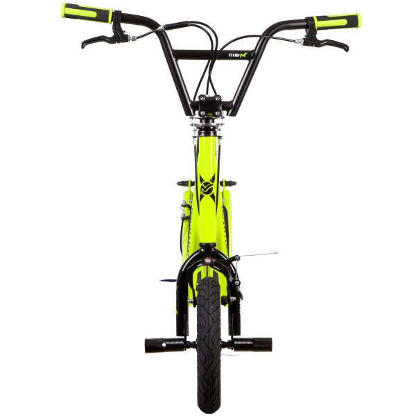 Внедорожный трюковый самокат Novatrack Stamp N1 Extreme Line - настоящая находка для тех, кто не хочет ограничиваться просто катанием, а готов активно передвигаться и покорять препятствия и трамплины, выполняя захватывающие трюки. Для этого модель оснащена гироротором для свободного вращения руля на 360 градусов и пегами для выполнения трюковых элементов. Надежная рама из высоколегированной стали способна выдерживать высокие нагрузки, и предназначена для райдеров от 10 лет и весом до 100 кг. Безопасное торможение обеспечивают сразу два тормоза алюминиевых тормоза Caliper brake, которые эффективно работают даже при скатывании с очень крутой горки на высокой скорости.