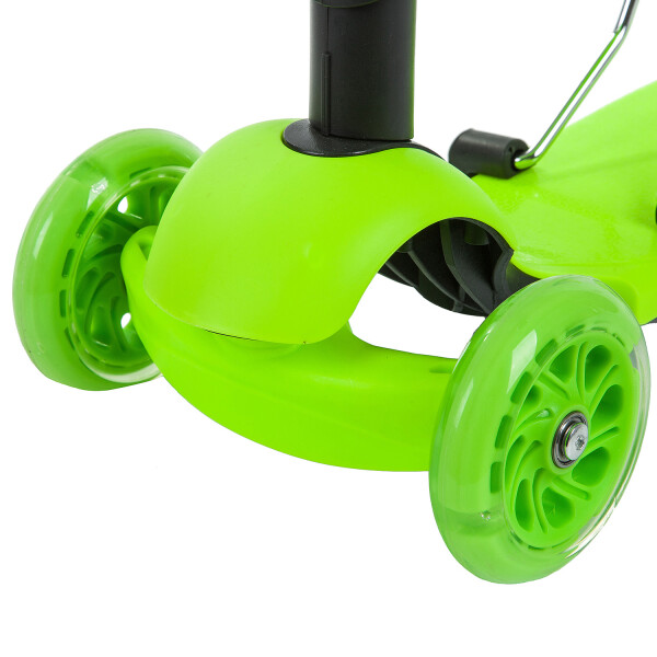 Самокат Novatrack Disco-Kids - это модель-трансформер с прикрепляемым сиденьем, на которой можно начинать кататься с раннего возраста. С сиденьем самокат выполняет роль каталки. Дека самоката выполнена из прочного пластика и выдерживает нагрузку до 25 кг. Т-образный алюминиевый руль снабжен мягкими резиновыми рукоятками, поворот осуществляется наклоном руля вправо/влево. Яркие полиуретановые колеса дополняют красочный облик самоката. Два больших колеса диаметром 120 мм и одно заднее 90 мм делают самокат устойчивым.