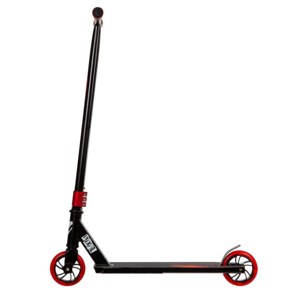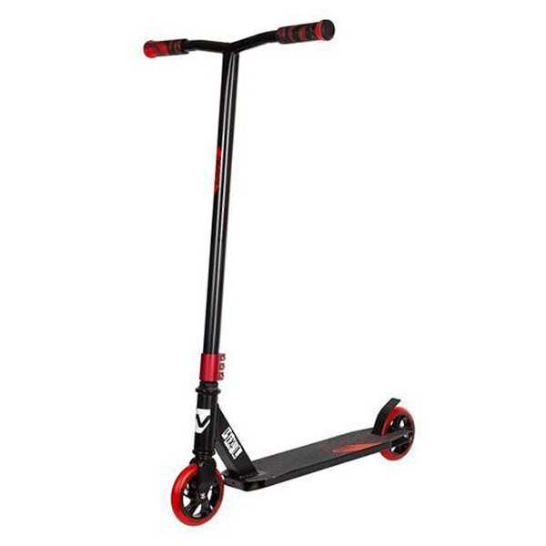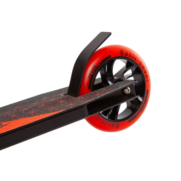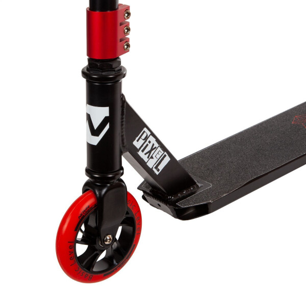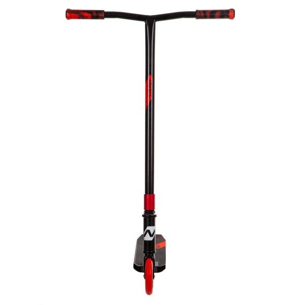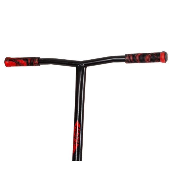 Самокат трюковый NOVATRACK PIXEL BL, PU колеса 120 мм с алюмин.ободом, жесткость PU 84A, abec7, стальной удлиненный Т-руль, разноцветные грипсы, стальн.вилка,черно-красный