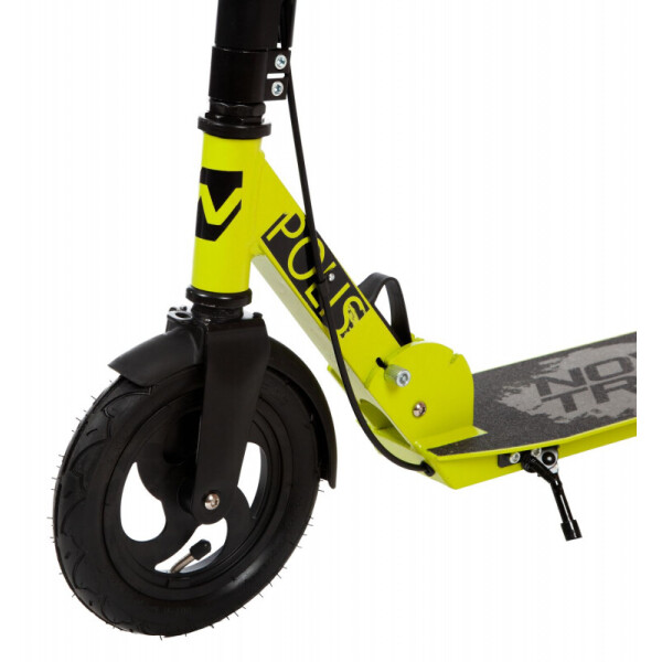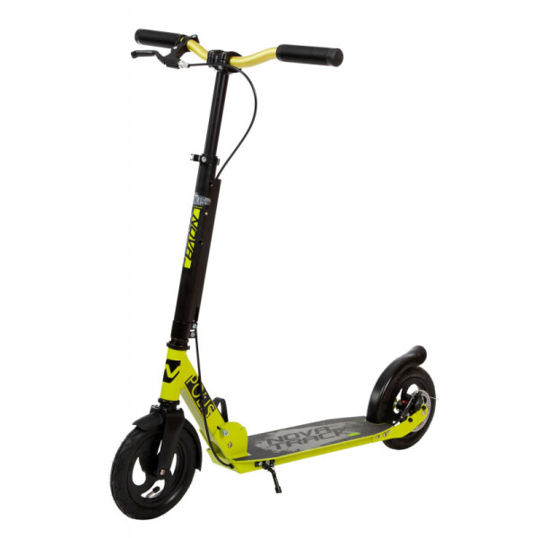 Novatrack Polis AL 200 Disc - надежный самокат на надувных колёсах размером 200 мм. Заниженная платформа с антискользящим покрытием способна выдерживать нагрузку до 100кг, позволяя активно и безопасно кататься как ребенку, так и взрослому. Система складывания самоката очень проста, безопасна и препятствует случайному открытию механизма во время езды. Надувные колеса обеспечат плавность передвижения по разным типам поверхности, а дисковый тормоз сделает торможение уверенным и быстрым в любых условиях.
