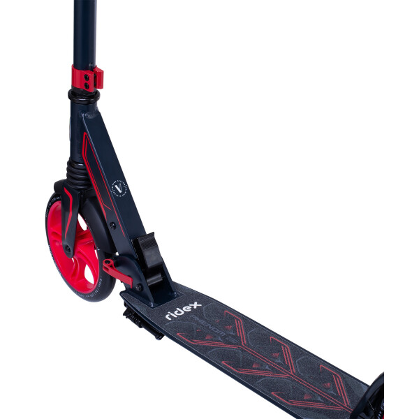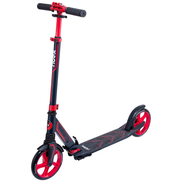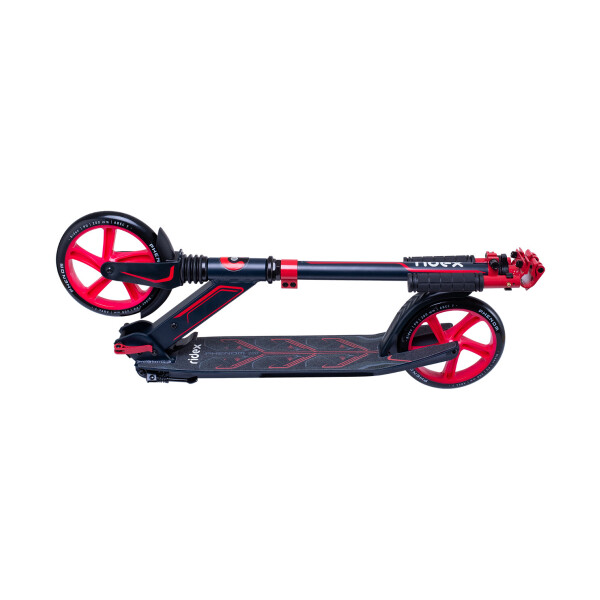 Передний амортизатор и полиуретановые колеса диаметром 200 мм минимизируют вибрации при передвижении по любым типам городского покрытия. За быстрое передвижение отвечают шустрые подшипники ABEC-7, а конструкция из высокопрочного и легкого алюминия добавит надежности и безопасности при катании и транспортировке. Стильный дизайн включает три цветовых решения и приятно радует глаз, заявляя о вашем статусе на дороге.