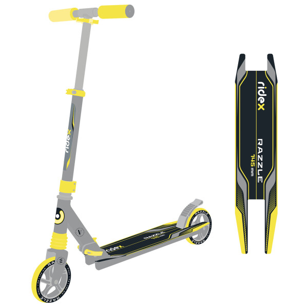Шустрые колёса 145 мм позволят преодолевать знакомые расстояния за малое количество времени, а яркие цветовые решения модели сделает вас самым стильным райдером на улице. Выбирайте свой собственный Razzle и катайте с удовольствием.