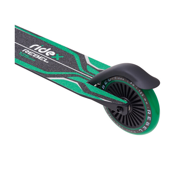 Полиуретановые колеса диаметром 125 мм помогут домчаться в нужное место еще быстрее, ловко маневрируя в потоке людей. Детский самокат RIDEX послушен своему райдеру, это достигается при помощи профессиональных подшипников ABEC-7.