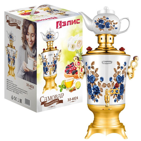 Самовар Элис ЭЛ-4024 станет прекрасной альтернативой обычному чайнику, украшенный росписью в исконно- русском стиле, он сделает ваш интерьер оригинальным и подчеркнет принадлежность к русской культуре. Кроме того, данная техника обладает рядом технических преимуществ: наличие заварочного чайника, функция поддержания температуры, индикатор работы - все это значительно упрощает процесс использования самовара. Вода в самоваре нагревается максимально быстро, и ее температура удерживается длительно время. Самовар станет прекрасным и оригинальным подарком к любому празднику!
