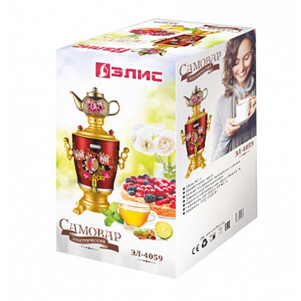 Элис ЭЛ-4059 имеет мощность 2200Вт, емкость, 4.0л, корпус из нержавеющей стали, съемный шнур, полированное покрытие корпуса, функция поддержания температурного режима, индикатор работы, дисковый нагревательный элемент, керамический заварной чайник 1.0л.