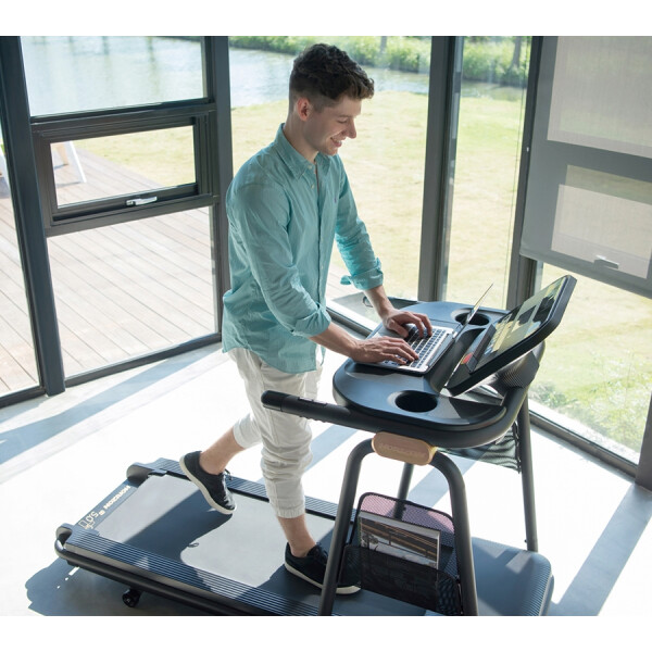 Cъемная парта предназначена для установки на дорожку и размещения на ней ноутбука или необходимых бумаг. Это тот самый случай, когда можно заниматься физической активностью, не отрываясь от своих рабочих дел. Вырабатывайте правильные привычки для здорового образа жизни, разгоняйте метаболизм, держите себя в хорошей физической форме, одновременно выполняя свои непосредственные обязанности в офисе. Вы удивитесь, насколько вырастет производительность труда, благодаря использованию беговой дорожки Horizon CITTA TT5.0 со съемной партой.