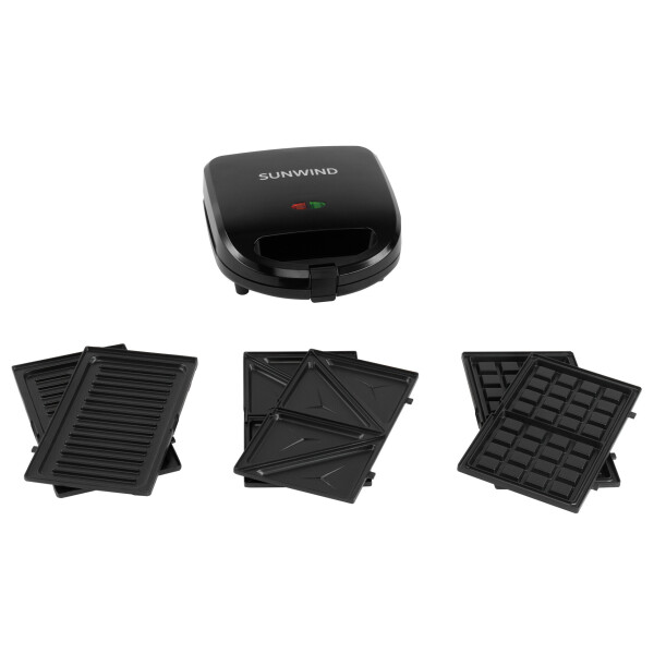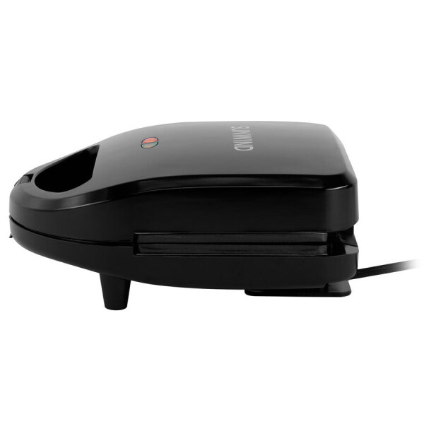Сэндвичница Sunwind SUN-SM-41 черного цвета обладает мощностью в 750 Ватт, чего вполне достаточно для создания быстрых завтраков.