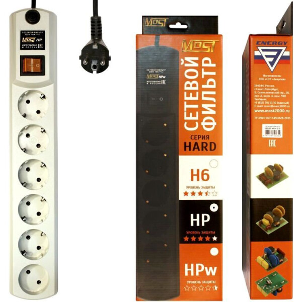 Сетевой фильтр Most HP оснащён мощной схемой фильтрации и обеспечивает надёжную защиту техники от высокочастотных помех и импульсных перенапряжений.