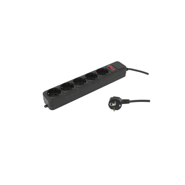 Сетевой фильтр PC PET AP01006-5-B черного цвета, имеет длина шнура 5м и 5 розеток.