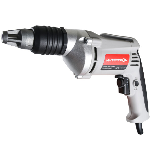Сетевой шуруповерт Интерскол Ш-8/700ЭР - надежный и удобный инструмент, который используется при монтаже гипсокартонных, древесноволокнистых и деревянных панелей на металлические тонкостенные или деревянные каркасы, в том числе без предварительного засверливания направляющих отверстий. Рукоятка шуруповерта оснащена специальной накладкой, которая предотвращает соскальзывание руки во время работы.