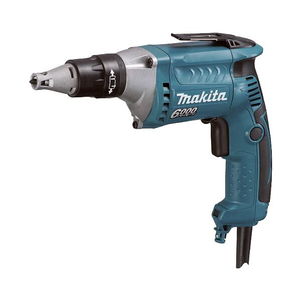Сетевой шуруповёрт Makita FS6300 предназначен для закручивания шурупов в различные материалы. Шуруповёрты Makita серии FS при одинаковой мощности отличаются конструкцией редуктора. Модели с меньшей скоростью обладают большей механической мощностью. Шуруповёрт Makita FS6300 - это профессиональный инструмент, который отлично подойдёт для строительных и монтажных работ. В отличие от универсальных аккумуляторных дрелей-шуруповёртов, которые могут использоваться для сверления и закручивания шурупов, шуруповёрт используется только для серийного закручивания шурупов. Но благодаря сужению функционала инструмент имеет меньшие габариты и меньший вес. Применяют шуруповёрт Makita FS6300 при закручивании шурупов диаметром до 4 мм и длинной до 50 мм в древесину, металл на сборочном производстве мебели и прочих производствах, где происходит сборка изделий шурупами. Основное же назначение шуруповёрта FS6300 - монтаж гипсокартонных плит. Скорость вращения 6000 оборотов в минуту делают такую работу очень быстрой. Не рекомендуется использовать FS6300 при закручивании шурупов в очень плотные материалы, такие как фанера.