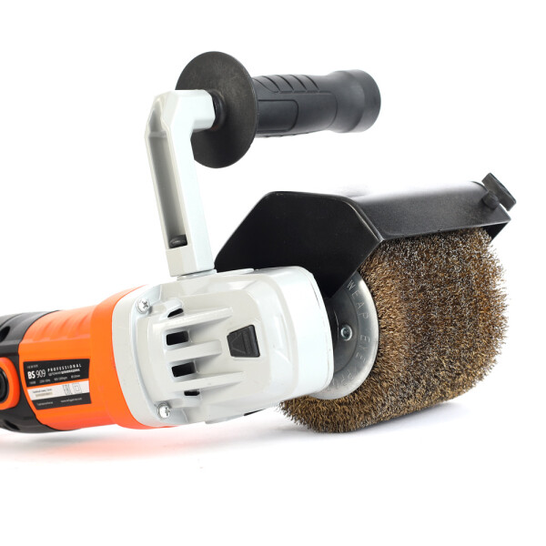 Брашировальная машина BS 909 предназначена для обработки дерева, железа и камня. Подходит для: шлифования, полирования, сатинирования, удаления ржавчины, грязи и старых покрытий. Плавная регулировка оборотов позволяет выбрать оптимальную скорость в зависимости от типа обрабатываемой поверхности. Комфортная работа обеспечивается дополнительной рукояткой и патрубком для подключения пылесоса, благодаря чему ваше рабочее место остается чистым.