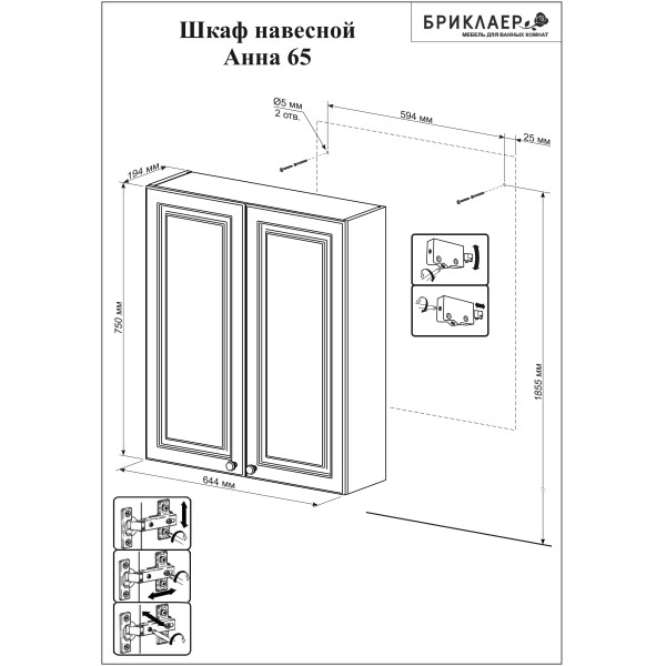 Тем, кто стремится минимизировать расход пространства в ванной комнате и при этом придать всем вещам в помещении организованный вид, стоит обратить внимание на навесной шкаф "Анна 65". Размеры навесного шкафа позволяют установить его в небольшой ванной комнате. А вместительные полки подарят возможность аккуратно разместить все косметические средства по уходу за телом (шампуни, крема, маски, гели для душа и пр.).