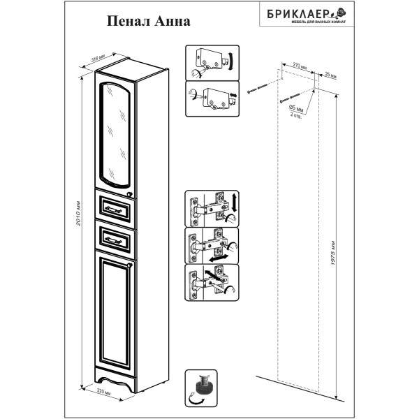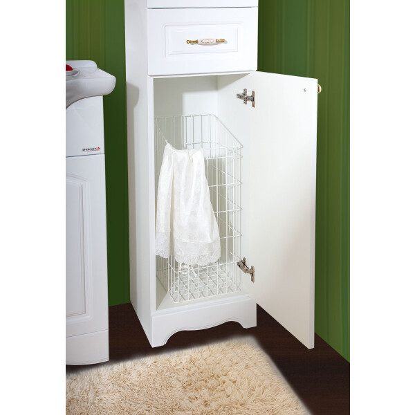 Независимая во всех отношениях корзина для белья может размещаться как внутри пенала, так и вне его - всё зависит от Вашего желания. Если вы не хотите, чтобы в Вашем пенале была корзина, вместо нее Вы можете установить в пенал дополнительную полочку.