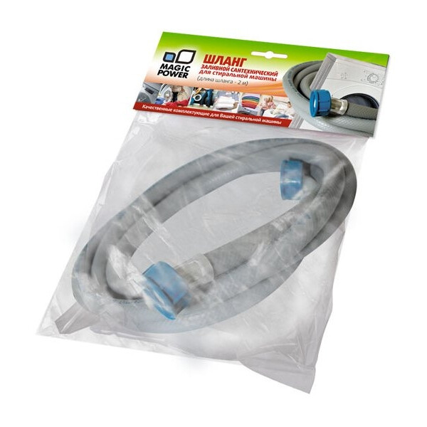 Предназначен для подключения стиральной машины к водопроводу. В комплекте со шлангом поставляются две уплотнительные прокладки для герметичного подсоединения заливного шланга к системе водопровода и стиральной машине.