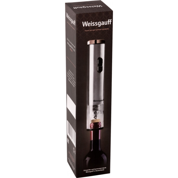 Удобный и эргономичный, электрический штопор Weissgauff избавит вас от всех неудобств, связанных с классическими ручными штопорами и станет настоящим украшением вечера, придав ему изысканности и элегантности.