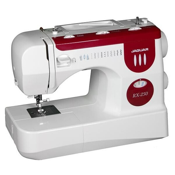 Jaguar RX-250 — классическая швейная машина с надежным механизмом и оптимальным набором строк. Модель предназначена для выполнения простых и декоративных операций, оснащена функцией «петля-полуавтомат» и рукавной платформой.