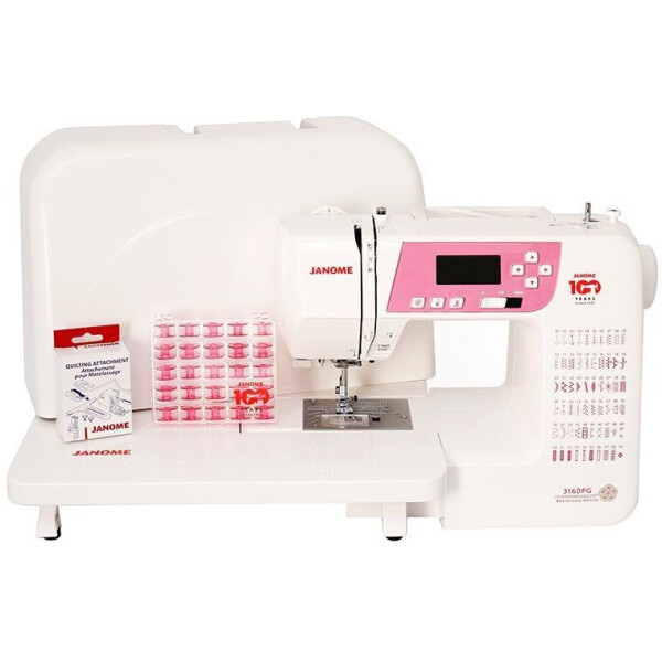Janome 3160PG Anniversary Edition имеет расширенный набор швейных операций, включая декоративные строчки и строчки для квилтинга. Все петли выполняются в автоматическом режиме. Машина оснащена функцией автоматической закрепки и обрезки нити, что облегчает работу. Используя уникальную разметку на игольной пластине, можно легко сшивать части квилтового проекта под нужным углом. Благодаря расширительному столику вы с лёгкостью создадите большой творческий проект или изделие. Швейный советник поможет выбрать нужные параметры: жк-дисплей с подсветкой отображает рекомендации и подсказки в виде знаков по каждой швейной операции
