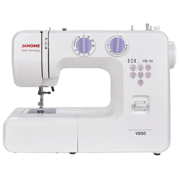Швейная машина Janome VS 50 станет вашим незаменимым другом в ремонте и пошиве одежды. В эту модель встроен электромеханический привод, запускающий работу махового колеса. Janome VS 50 оснащена классическим вертикальным челноком, который за многие годы использования в швейных машинах зарекомендовал себя надежным, недорогим и долговечным механизмом. Отрегулировав длину и ширину стежка, вы сможете значительно улучшить уже существующие типы строчек. 11 мм высоты подъема лапки вполне достаточно для работы с плотными и толстыми материалами. В Janome VS 50 предусмотрено 7 различных типов операций, с которыми вы сможете произвести ремонт прохудившейся одежды. Петли выполняются в полуавтоматическом режиме без поворота материала. Сэкономьте ваши деньги, подрубив новые брюки дома при помощи потайного шва. Для работы с трикотажем предусмотрен эластичный простой и потайной стежок. Скорость шитья можно плавно отрегулировать силой нажатия на ножную педаль. Для удобного шитья манжет и воротников можно отстегнуть рукавную платформу от корпуса Janome VS 50.