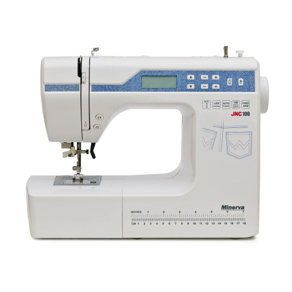 Швейная машина Minerva JNC100 с компьютеризированным типом управления предоставляет возможность легко выбрать необходимую операцию и позволяет контролировать движение иглы относительно материала. Горизонтальный челнок характеризуется устойчивостью к изнашиванию и высокой степенью надежности. В устройстве имеется 100 видов строчек, в том числе имитирующая оверлок и оптимально подходящая для работы с деликатными типами ткани, а также потайная — для подрубки изделий с лицевой стороны. Для освещения рабочей поверхности модель оснащена подсветкой.