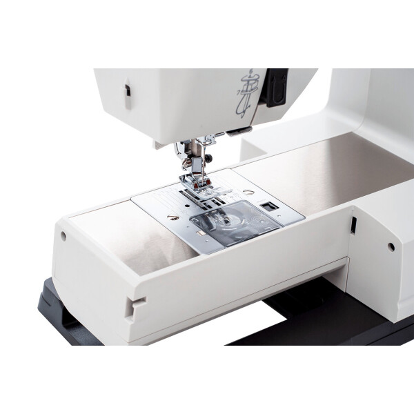 Электромеханическая, полупромышленная швейная машина Necchi 7434AT оснащена мощным мотором 90W, усиленной металлической станиной, обладает очень высокой скоростью шитья и продается с расширительным столиком уже в базовой комплектации. Машина имеет в своем функционале расширенный набор строчек, среди которых: автоматическая петля, прямые строчки, зигзаг, потайные швы для подшивки низа, оверлочная строчка, большой выбор трикотажных и декоративных строчек, а также усиленные строчки для тяжелых материалов. При помощи этой модели Вы сможете работать с тканями разных типов, а также выполнять ремонт и пошив одежды и ее украшение. Встроенное яркое освещение рабочей поверхности сделает работу более комфортной. Для удобства в комплекте идут необходимые аксессуары, которые будут всегда под рукой: расширительный столик, двойная игла schmetz, набор игл schmetz, лапка для пришивания пуговиц, вшивания молний. тефлоновая лапка. для выметывания петли, направляющая для квилтинга, шпульки, держатель катушки большой, держатель катушки малый, фетровая подушечка, отвертка, распарыватель с щеткой.