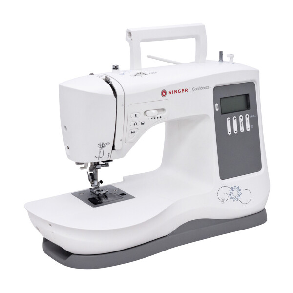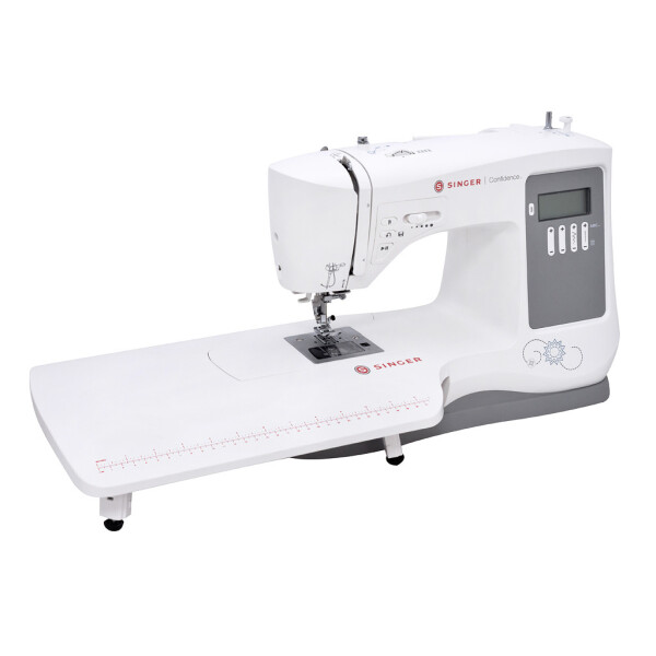 SINGER CONFIDENCE 7640Q шшвейная машина с микропроцессорным управлением. Многообразие строчек, как стандартных и эластичных, так и декоративных, включая алфавит, поможет Вам проявить себя в рукоделии, машина прекрасно подойдет для шитья одежды, предметов домашнего декора и многого другого. Пластиковая таблица со всеми доступными строчками может быть закреплена на ручке машины. Позволяет быстро находить нужный вид и номер строчки. Оптимальные настройки для длины и ширины стежка устанавливаются автоматически для выбранной строчки, но могут быть изменены по вашим персональным требованиям к шитью. Отключите педаль, нажмите кнопку "Пуск", и машина будет шить. Беспедальным шитьем удобно пользоваться при выполнении длинных прямых одинаковых строчек, а также при шитье в технике свободного передвижения, установив необходимую скорость с помощью рычага регулировки. Машина будет автоматически выполнять строчку с постоянной скоростью. Входящий в комплектацию расширительный столик с нанесенной на него линейкой обеспечивает большую рабочую поверхность, столь необходимую для квилтинга или при работе с другими большими изделиями.
