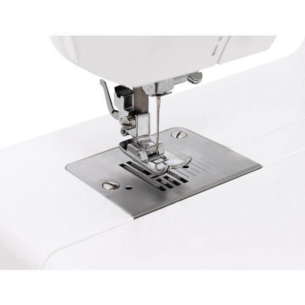 Машина оснащена самым необходимым при шитье набором строчек: прямая строчка (с центральным и смещенным положением иглы), зиг-заг, 3-х шаговый зиг-заг, 2 потайных строчки для плотных тканей, потайная строчка для эластичных тканей, декоративная строчка, а также 1 полуавтоматическая петля.