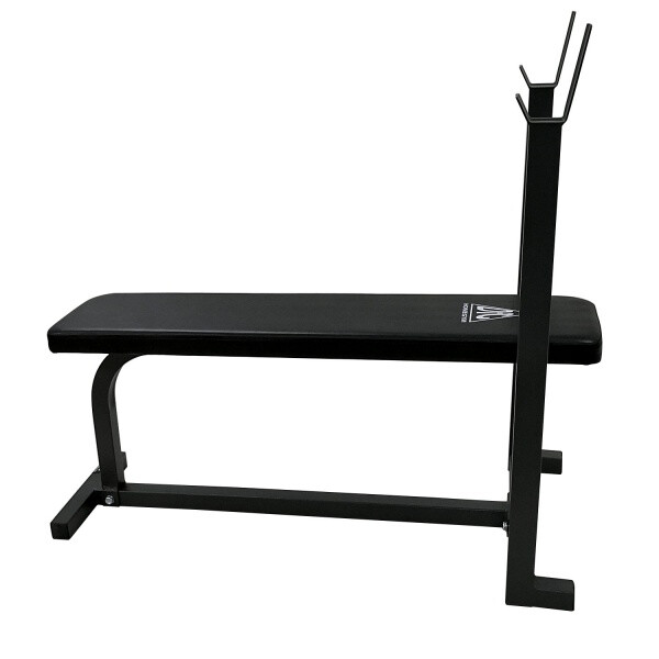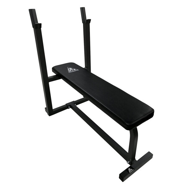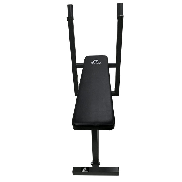 Силовая скамья со стойками под штангу DFC Homegym - домашний тренажер для выполнения силовых упражнений. Предназначен для выполнения упражнений жим лежа со штангой (гриф и диски приобретаются отдельно). Прямая скамья позволяет выполнять баттерфляй с гантелями для грудных мышц. Так же возможно делать упражение подъем ног к туловищу, руками в качестве упора взяться за стойки. Максимальная нагрузка на стойки 100 кг.