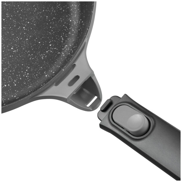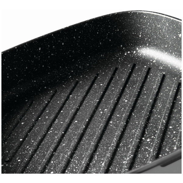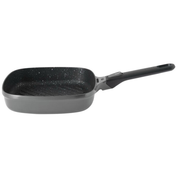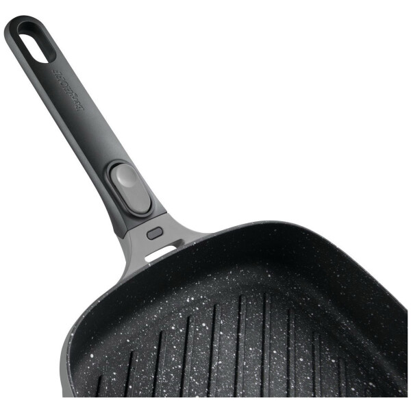 Съёмная ручка позволяет использовать посуду без ручки в духовке, а также поможет сэкономить место при хранении. Благодаря рифлёному дну посуда идеальна для стэйков, рыбы и овощей гриль