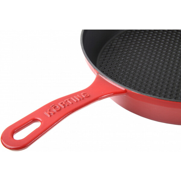 Дно сковороды имеет рельеф в виде сот, что снижает необходимость использования масла и придает блюду неповторимый рисунок. Материал сковороды обеспечивает быстрый и равномерный прогрев дна для идеального результата и длительного поддержания тепла.