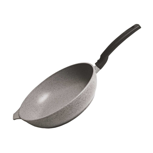 Сковорода Кукмор изготовлена из высококачественного алюминия с внутренним мраморным покрытием. С таким покрытием пища не пригорает и посуда легко моется. Благодаря прочному дну происходит идеальное и равномерное распределение тепла. Сковорода имеет удобную съемную ручку, изготовленную из ненагревающегося материала. Подходит для всех плит, кроме индукционных.