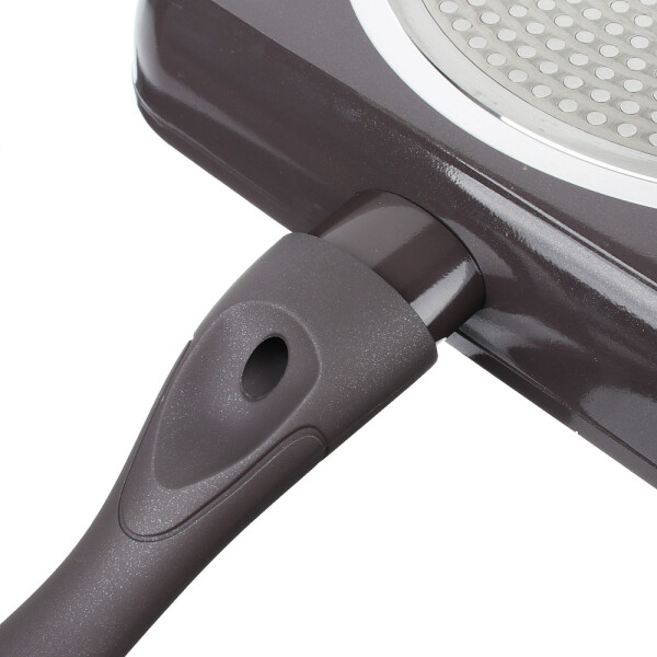Сковорода-гриль SATOSHI Верден изготовлена из высококачественного литого алюминия с антипригарным покрытием и рифленой поверхностью. Все это способствует быстрому и равномерному нагреву. Пища не прилипает к стенкам посуды, на ней можно готовить с минимальным добавлением масла и жиров.