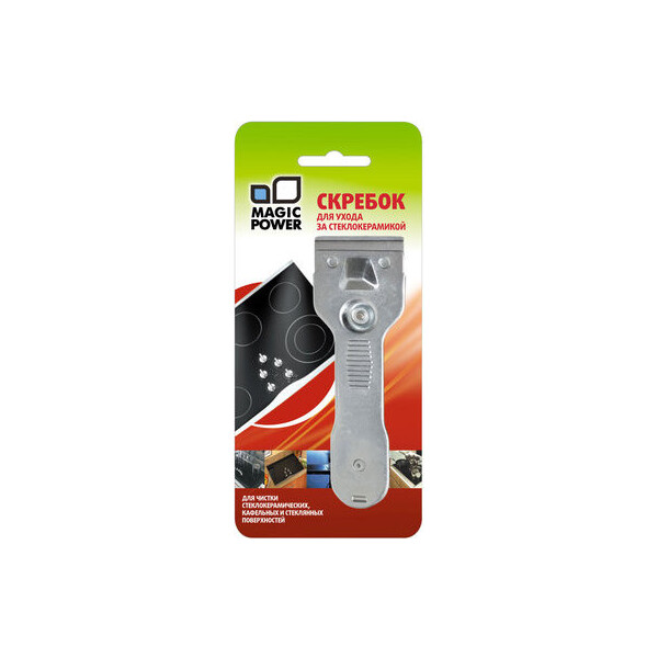 Стальная ручка Magic Power MP-603 удобно лежит в руке. Длина изделия – 13,5 см, ширина лезвия 42 мм обеспечивает маневренность скребку, вы легко очистите загрязнения даже в углах изделий со сложной конфигурацией. Регулярное использование скребка, вместо применения абразивных губок, поможет увеличить срок эксплуатации поверхностей из стекла и керамики.