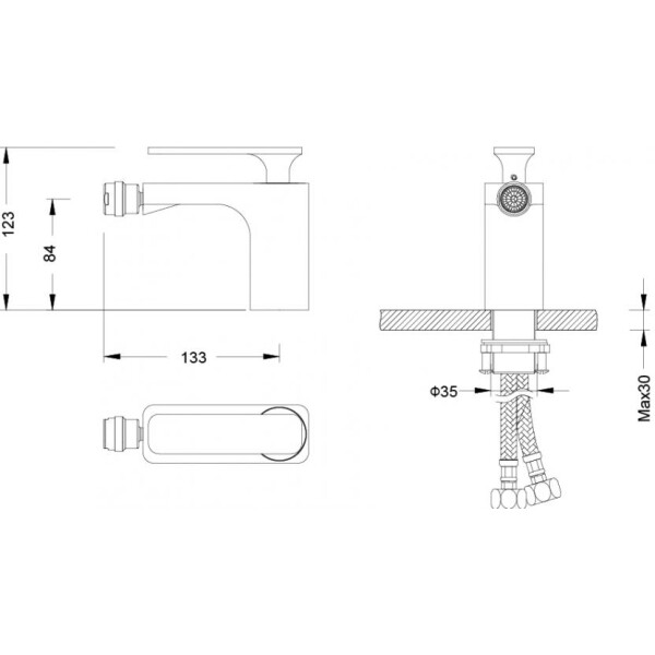 Смеситель для биде Timo выполнен из латуни в цвете хром. Излив смесителя стационарный. Монтаж производится на поверхность с одним отверстием. Управление смесителем рычажное.
