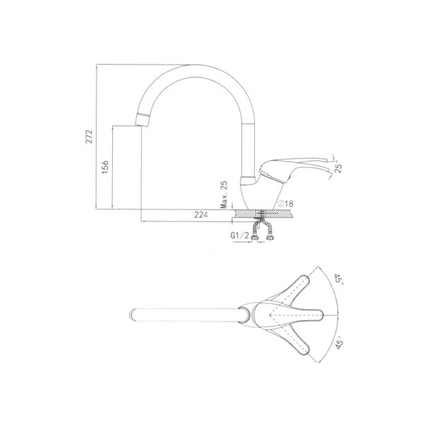 Смеситель для кухни Granula GR-1024 - это классическая среднеразмерная модель с боковой ручкой.