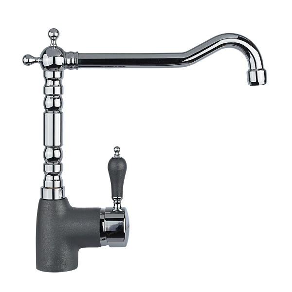 Кухонный смеситель классического стиля комбинированного цвета Kuppersberg Paris KG400 Grey Metal/Ch прекрасно сочетается с гранитными мойками и фурнитурой из хрома. Специальный картридж позволяет устанавливать смеситель практически вплотную к стене, с управлением рукоятки на себя.Однорычажный смеситель Kuppersberg Paris KG400 Grey Metal/Ch в оригинальном винтажном исполнении будет великолепно сочетаться с классическим или ретро интерьером кухни. Модель характеризуется высоким изливом и удобным рычагом, позволяющим легко регулировать поток воды и температуру.