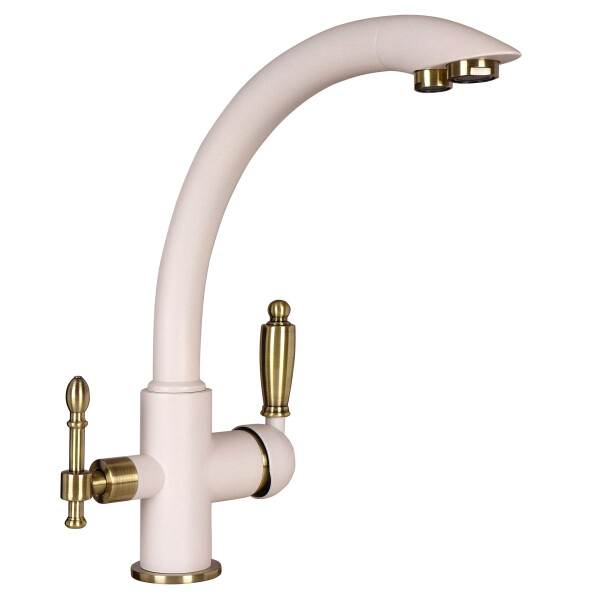 Смеситель для кухни Floracio Gracia подходит для подключения к фильтру. Проточная и фильтрованная вода, благодаря конструкции смесителя, будут подаваться через разные каналы.