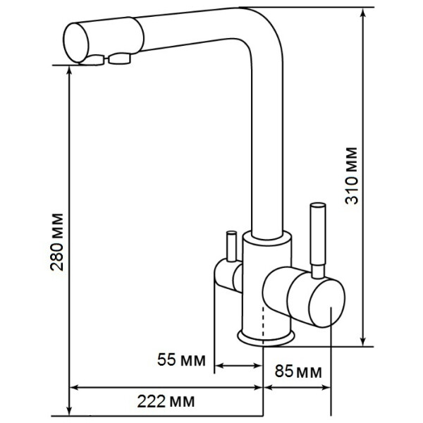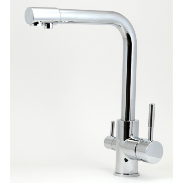 Модель рассчитана на подключение к фильтру для воды, что избавляет от необходимости устанавливать для него отдельный кран. При этом питьевая и проточная вода не будут смешиваться, есть отдельный излив под фильтр.