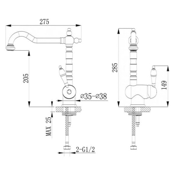 | Длина излива | 27.5