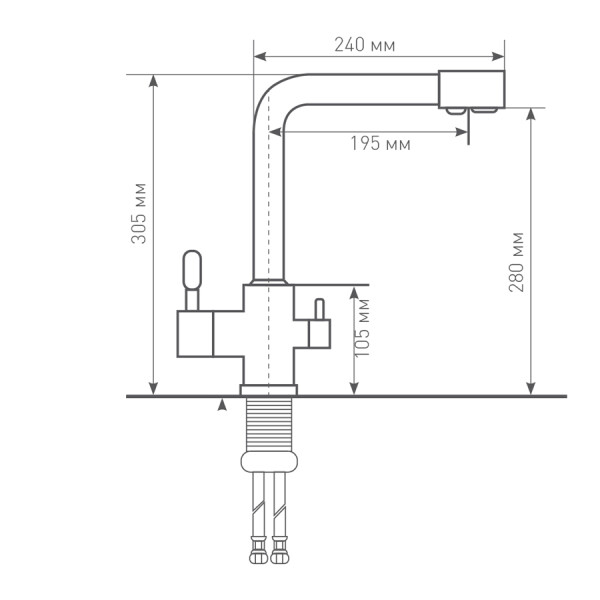 Для Вашего удобства в новом смесителе Zigmund Shtain ZS 1300 реализована функция безключевого подключения гибкой подводки. Для подсоединения смесителя к водопроводной и фильтрованной воде, достаточно вкрутить рукой шланги гибкой подводки в соответствующие отверстия на корпусе смесителя.