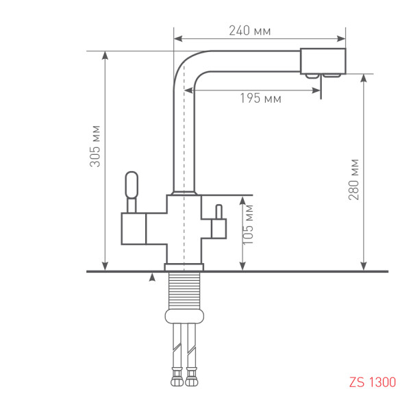 Для Вашего удобства в новом смесителе Zigmund Shtain ZS 1300 реализована функция безключевого подключения гибкой подводки. Для подсоединения смесителя к водопроводной и фильтрованной воде, достаточно вкрутить рукой шланги гибкой подводки в соответствующие отверстия на корпусе смесителя.