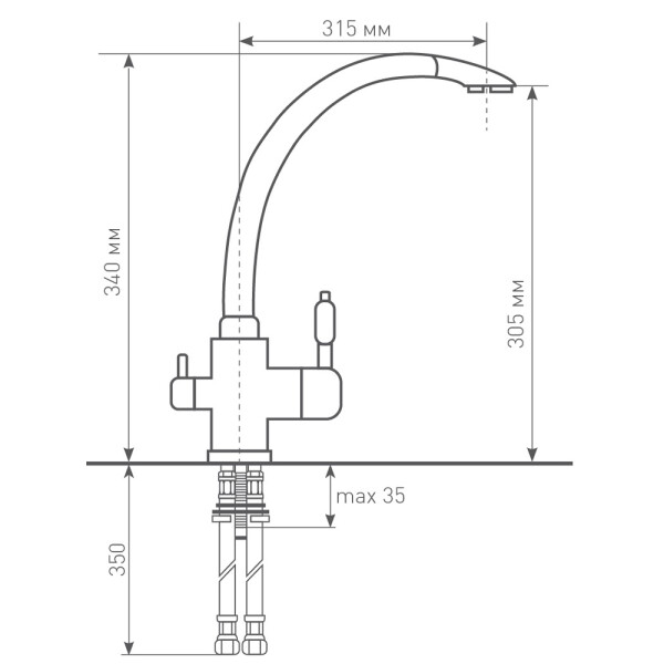 Смеситель для мойки Zigmund & Shtain ZS 1500 можно подключить к фильтру: фильтрованная и проточная вода будут подаваться по разным каналам.