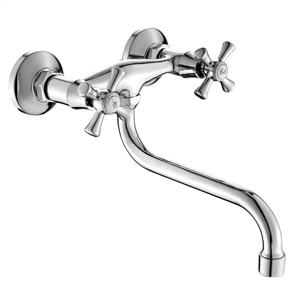 Смеситель имеет вентильное управление и поворотный излив.