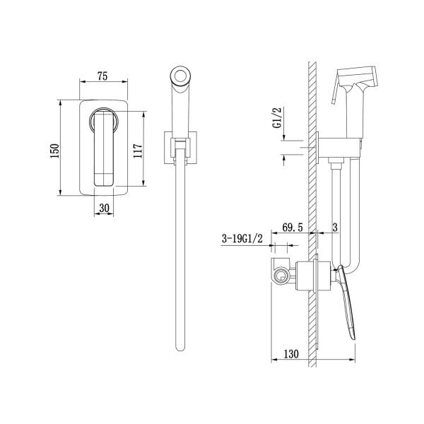 шланг душа 1,2 м - 1 шт.;