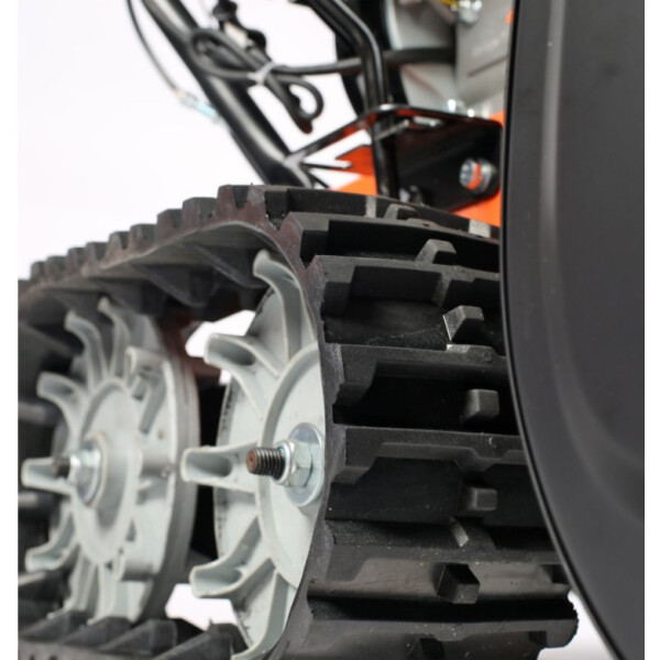 Один из самых "укомплектованных" снегоуборщиков. Мощный двигатель 7,8 л.с., фара и электростартер, а гусеницы обеспечивают максимальное сцепление с заснеженным грунтом и исключают скольжение, что дает возможность убирать тяжелый снег, а легкость разворота обеспечивается блокировкой дифференциала. В конструкции снегоуборщика используются только подшипники, а не втулки. Шестерня редуктора шнека выполнена из бронзы, что в десятки раз увеличивает ресурс снегоуборщика. На заводе производится регулировка и обкатка каждой единицы техники в собранном состоянии.