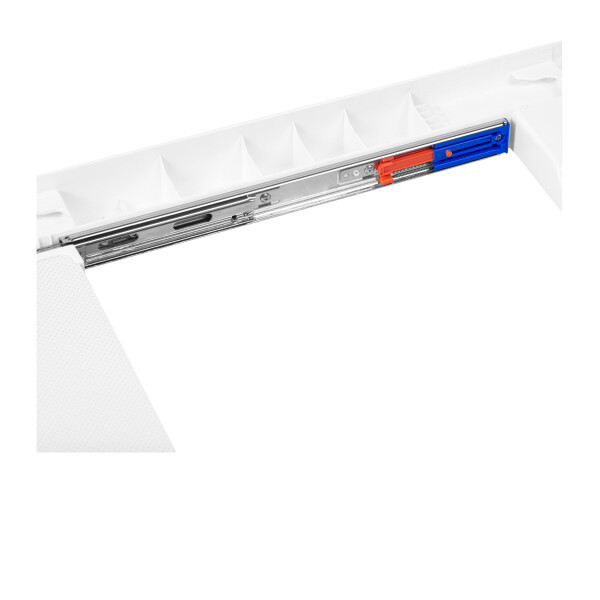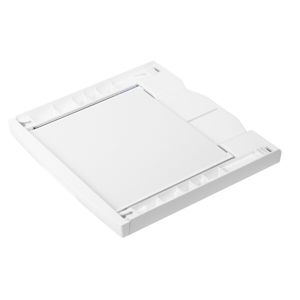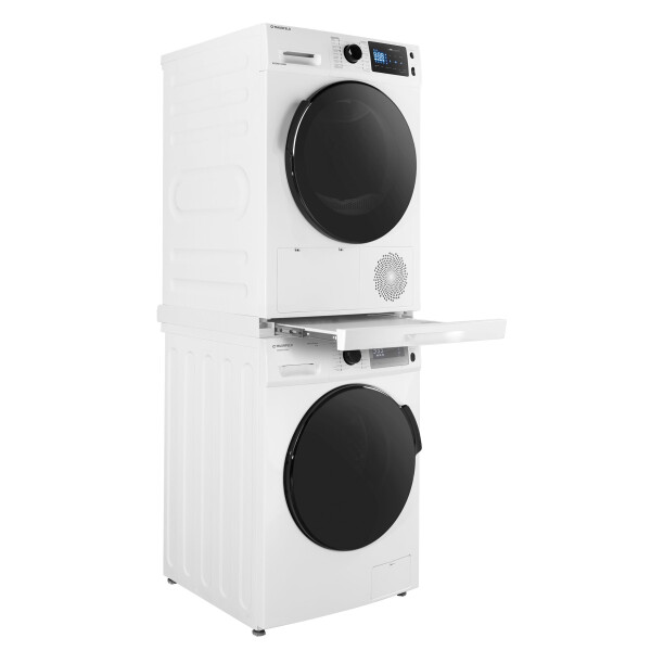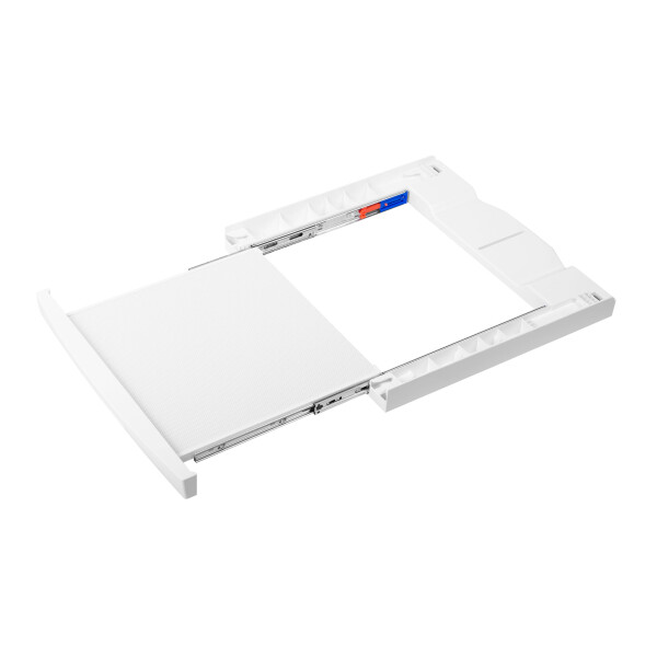 Благодаря выдвижной полке с автоматическими доводчиками больше не придется постоянно наклоняться к корзине с бельем или держать ее на весу при разгрузке сушильной машины, достаточно просто поставить корзину на полку.