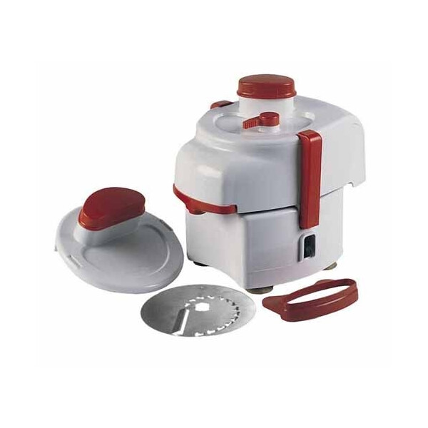 Стакан для сока уже входит в комплект, равно как и насадки, предназначенные для нарезки и шинковки.