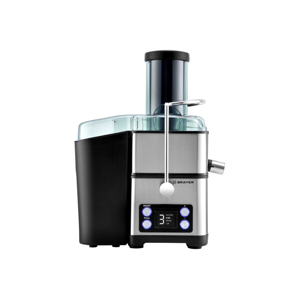 Центробежная соковыжималка Brayer BR1704 - универсальная центробежная соковыжималка экономит время и позволяет быстро получить много свежего сока почти из любых фруктов, овощей. Благодаря широкому загрузочному отверстию диаметром 75 мм можно не разрезать предварительно яблоки, груши и прочие продукты на части, а класть их целиком в соковыжималку. Особенности: Мощность устройства 800 Вт. 4 скорости работы - для получения сока из твердых и мягких плодов Жмых автоматически поступает в специальный контейнер для мякоти объемом 2 л, которым оснащена соковыжималка. Съемные детали можно мыть в посудомоечной машине.