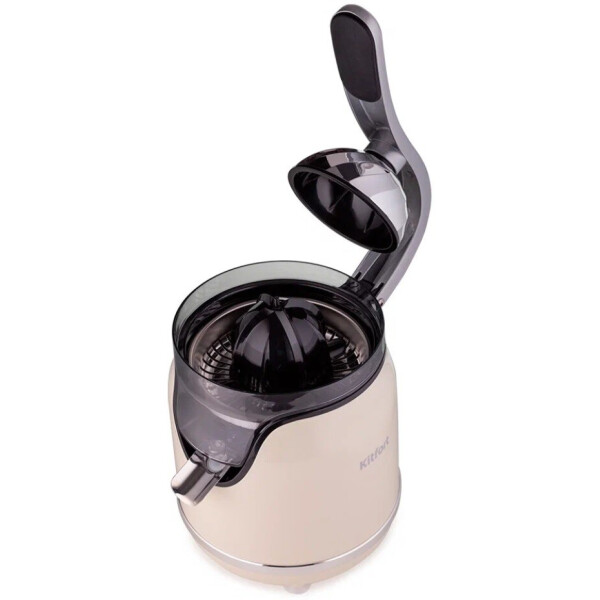 Соковыжималка KT-1131 с прижимным механизмом предназначена для отжима сока из цитрусовых плодов малого и среднего размера. Ручка, фильтр и носик выполнены из нержавеющей стали, остальные детали изготовлены из качественного пищевого пластика. Чтобы привести соковыжималку в действие, нужно нажать на ручку. Ручка имеет резиновое покрытие в нижней части, чтобы ее было удобно держать. Подача сока осуществляется прямо в ваш бокал. В соковыжималке КТ-1131 предусмотрена противокапельная система. После процесса отжима, убрав емкость для сока, капли сока все еще могут стекать на стол. Чтобы этого избежать, на носике для выхода сока есть прорезиненная область, которая обеспечивает его герметичное закрытие. Прорезиненные ножки не дают прибору скользить по столу во время отжимания сока.Соковыжималку удобно мыть, все съемные части легко вынимаются.